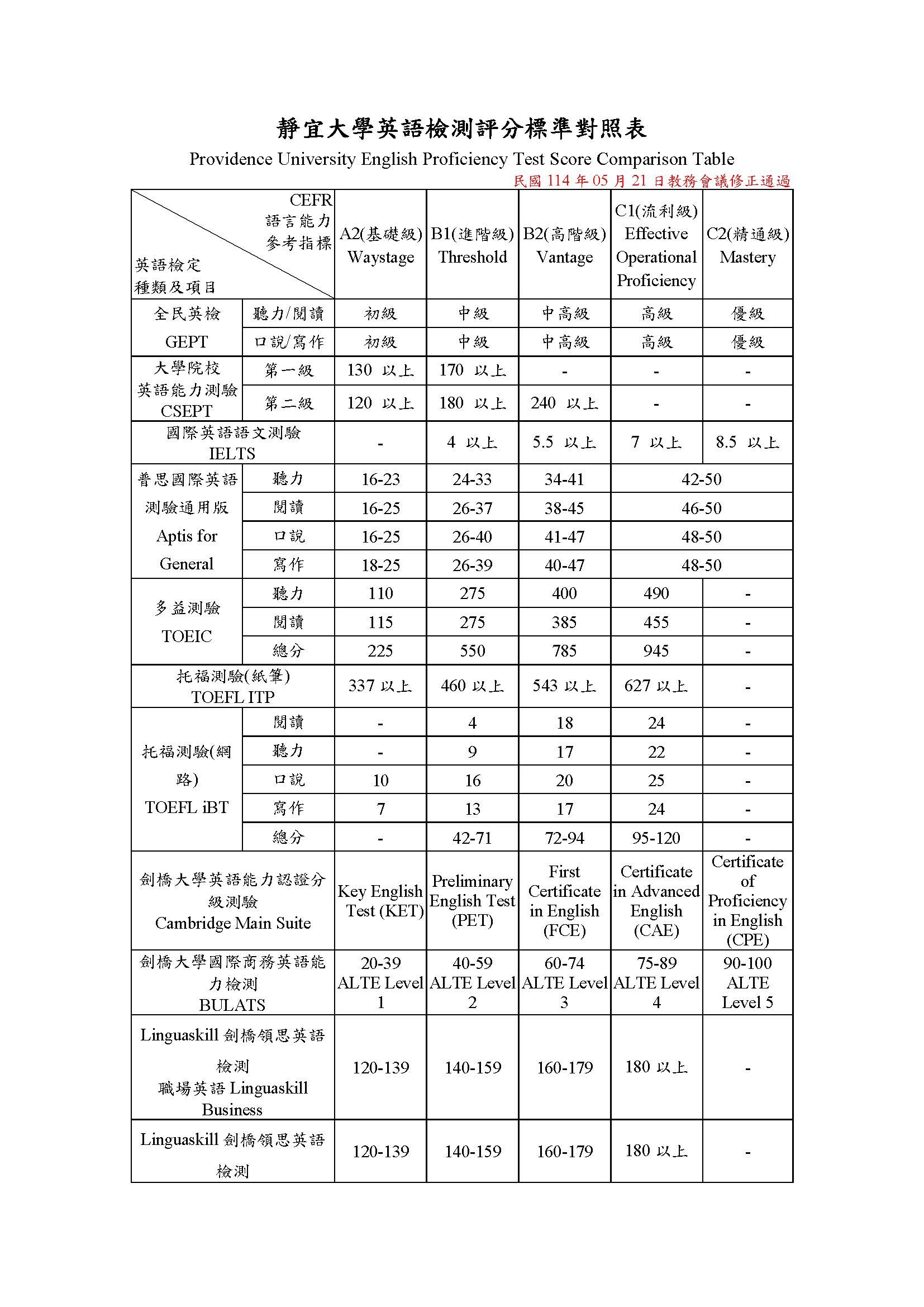 靜宜大學英語檢測評分標準對照表(1140521教務會議通過).pdf