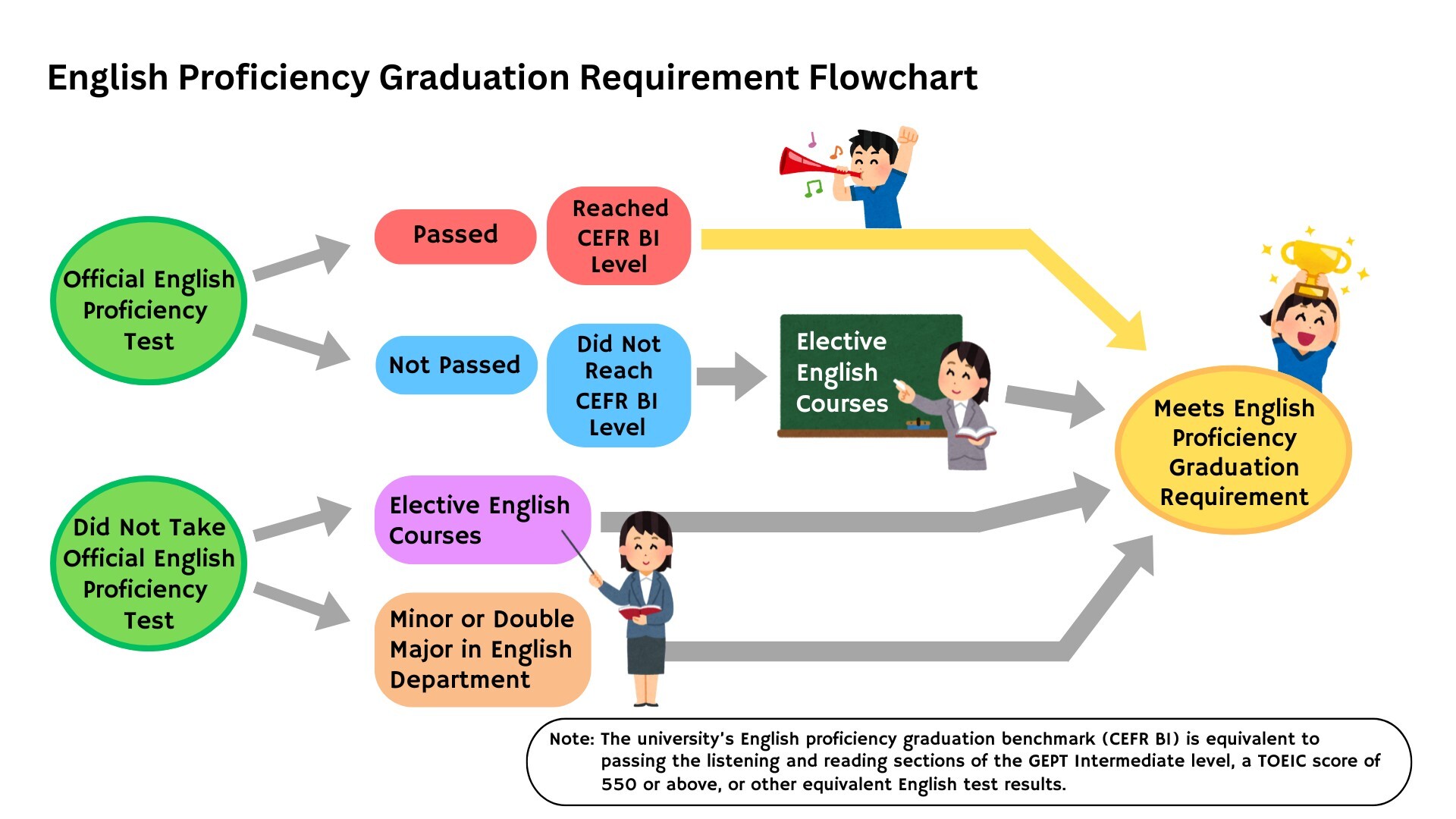 【外語教學中心】校訂英文能力畢業條件配套流程圖 English Proficiency Graduation Requirement Flowchart