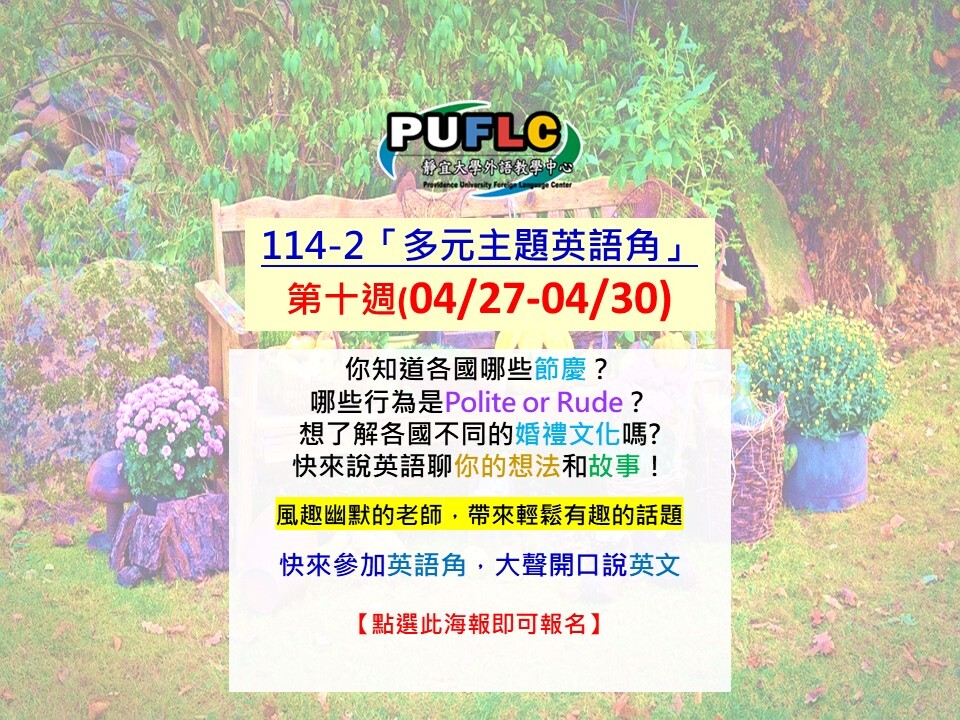 【外語教學中心】114-2多元主題英語角2026/04/27-04/30(W10)