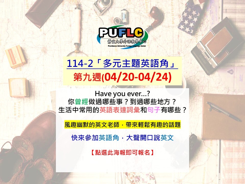 【外語教學中心】114-2多元主題英語角2026/04/20-04/24(W9)
