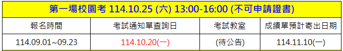 4. 繳費完成後即無法全額退費,請於報名前確認是否可以配合考試時間及場地。